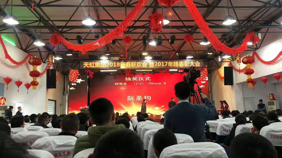 年會接近尾聲,武漢天虹董事長李虹杰先生做總結性致辭。李總表示,武漢天虹自成立以來,經歷了風風雨雨,大浪淘沙,通過多年的努力,企業不斷發展壯大,業務蒸蒸日上。天虹在過去的一年中在產品研發和市場開拓領域屢創佳績。武漢天虹一直注重技術創新,以高精尖的產品服務客戶;以客戶滿意為訴求,不斷加強自身服務能力;以人為本,不斷為員工謀福利,企業形象不斷提高。希望武漢天虹人在2018年繼續發揚專注、精進、誠信、實干的天虹精神,創造天虹更輝煌的明天。最后,李總祝全體員工狗年里吉祥如意,闔家歡樂!