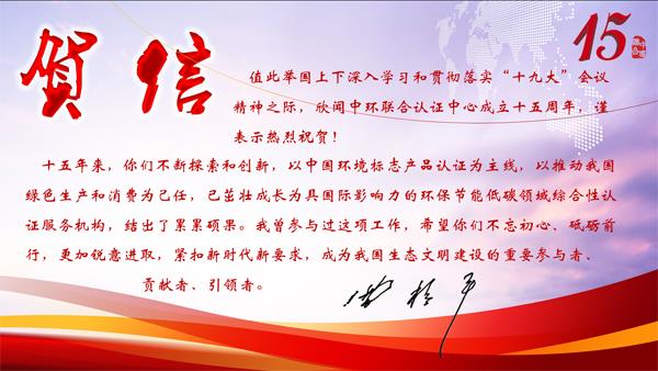 本次論壇恰逢承辦方中環聯合認證中心成立15周年,原全國人大環境與資源保護委員會主任委員、中華環境保護基金會名譽理事長、中環聯合認證中心第一任管委會主任、被譽為“中國環境保護之父”的曲格平先生為本次論壇發來賀信:勉勵大家不忘初心,砥礪前行,更加銳意進取,緊扣新時代新要求,成為我國生態文明建設的參與者、貢獻者、引領者。