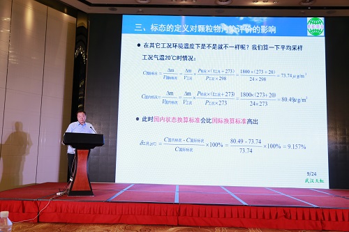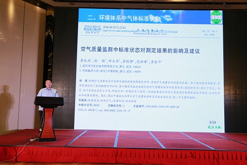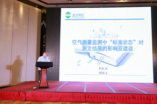 武漢天虹董事長李虹杰應邀在主論壇發表了題為《空氣質量監測中“標準狀態”對測定結果的影響及建議》的專題報告,先聲奪人,引起了環境監測政府部門的高度重視,并獲得了與會人員的好評與認可。